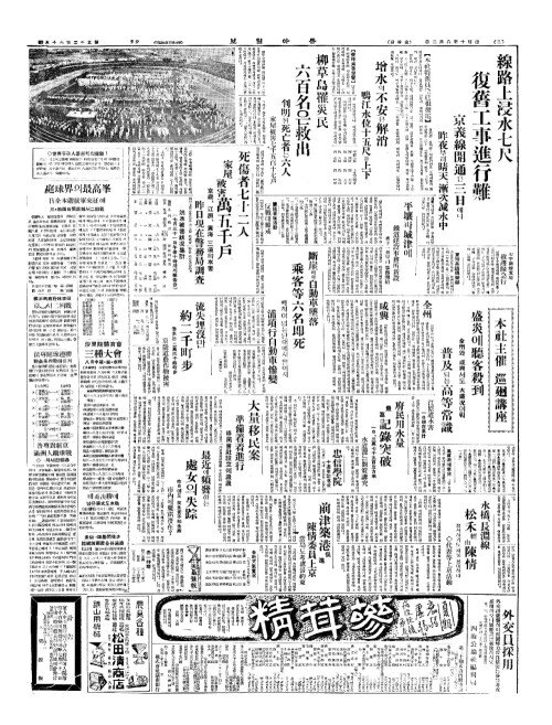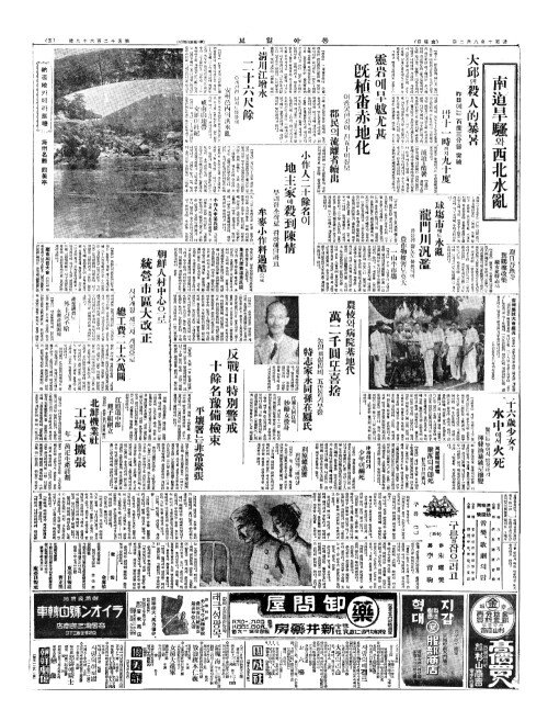 - 南道旱騷(남도한소)와西北水亂(서북수난) 大邱(대구)엔 殺人的暴暑(쇄인적폭서)