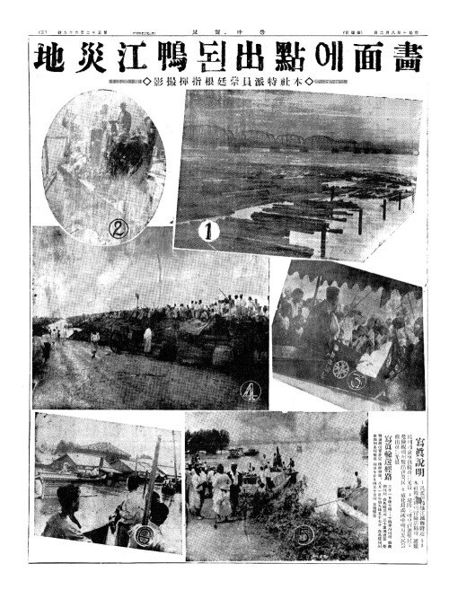 - 减水(감수)로顯露(현노)되는鴨江流域慘害(압강류역참해) 激浪(격랑)에 流失(류실)된家屋(가옥) 三千七百戶突破(삼천칠백호돌파)