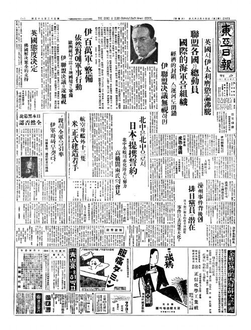 - 英國(영국)서伊太利膺懲論沸騰(이태리응징론비등)