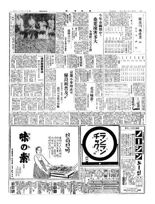 - 今年春繭期中(금년춘견기중)의 桑葉凍害多大(상섭동해다대)