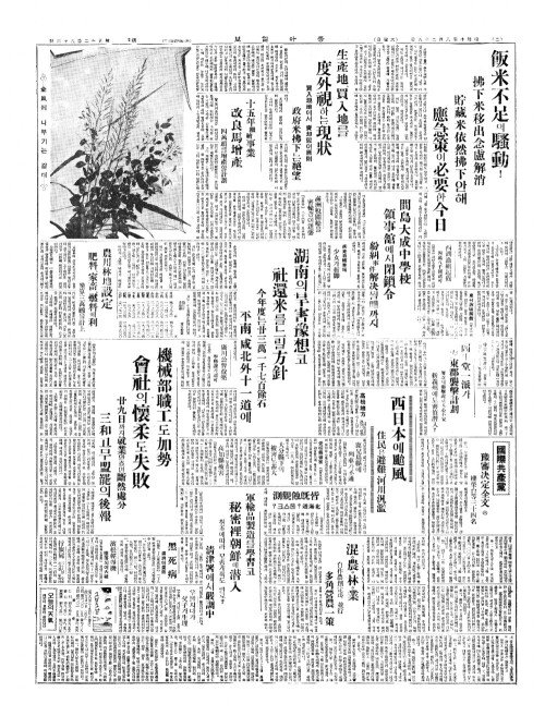 - 湖南(호남)의旱害豫想(한해예상)코 社還米(사환미)를느릴方針(방침)