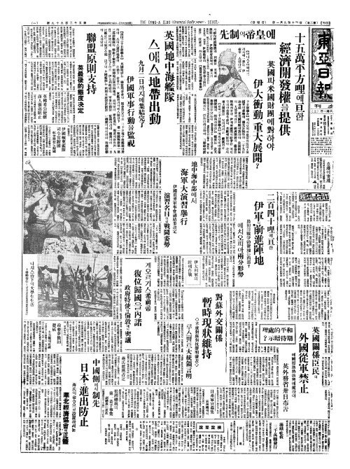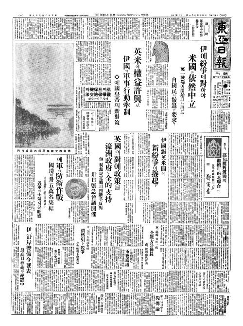 - 英米(영미)에權益許與(권익허여)로 伊國(이국)의軍事行動牽制(군사행동견제)