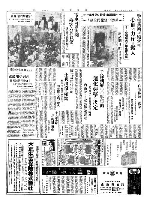 - 電車(전차)끼리衝突(충돌) 乘客六名負傷(승객륙명부상)