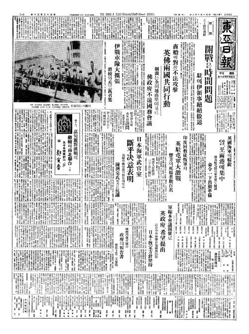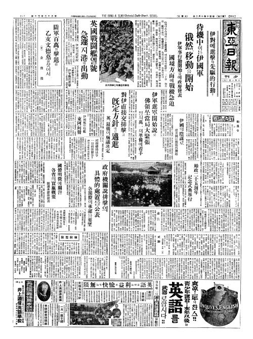 - 伊軍進軍開始說(이군진군개시설)로 佛領(불영)쏘當局大緊張(당국대긴장)