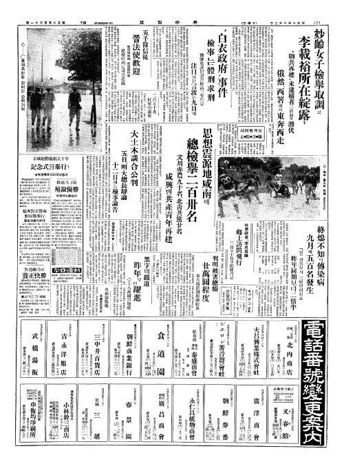 - 思想震源地咸南(사상진원지함남)에 總檢擧二百卅名(총검거이백삽명)