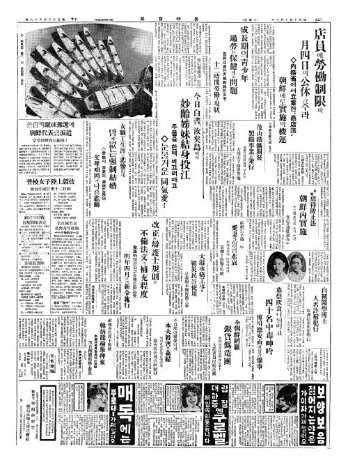 - 今日白晝(금일백주)、汝矣島(여의도)에서 妙齡姊妹結身投江(묘령자매결신투강)