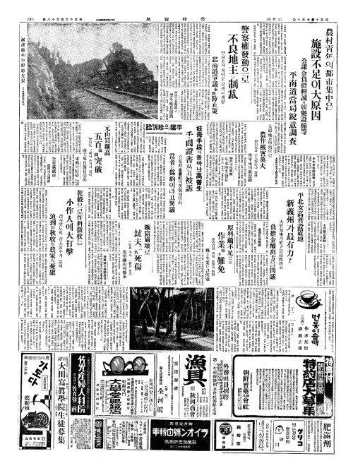 - 乾糓(건곡)으로作料徵收(작요징수)는 小作人(소작인)에大打擊(대타격)