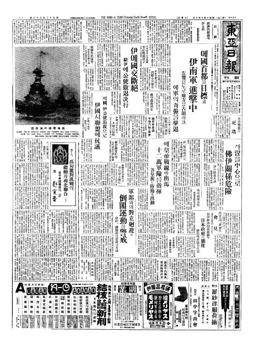 - 에國(국)、伊公使追放(이공사추방)으로 伊國(이국)서聯盟(련맹)에抗議(항의)