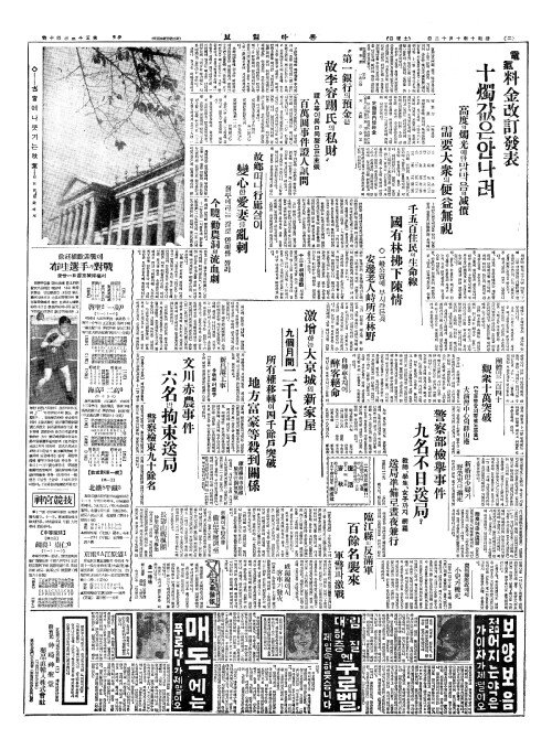 - 電氣料金改訂發表(전기요김개정발표) 十燭(십촉)값은안나려