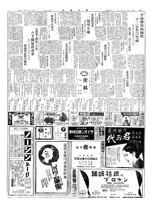 - 平南傳染病犧牲(평남전염병희생) 千三百名(천삼백명)을突破(돌파)