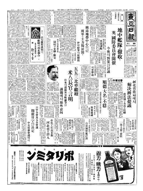 - "歐洲(구주)의葛藤(갈등)엔는 超然中立(초연중입)"