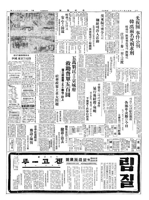 - "光復團(광복단)"事件公判(사건공판) 韓(한)、禹兩名死刑求刑(우양명사형구형)