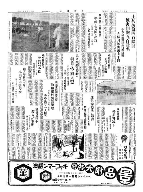 - 災害繼續(재해계속)의慶北(경북)에 棉作(면작)은空前大豐(공전대풍)
