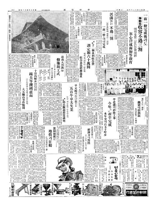 - 一面一校完成後(일면일교완성후)라도 學齡兒收容不過三割(학령아수용부과삼할)