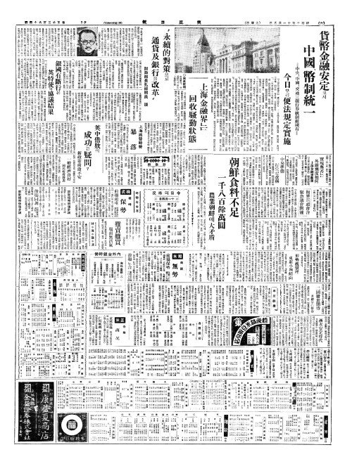 - 貨幣金融安定(화폐김융안정)코저 中國(중국)、幣制統一(폐제통일)