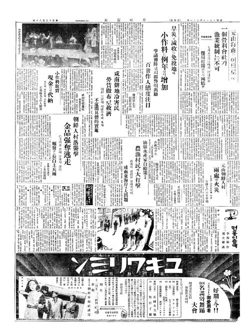 - 咸南僻地冷害民(함남벽지냉해민) 勞賃撒布(노임살포)로救濟(구제)