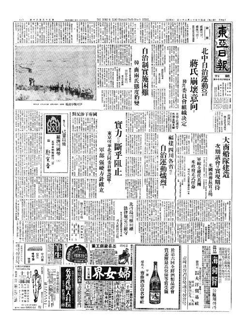 - 自治制實施困難(자치제실시곤난) 韓(한)、商兩氏態度豹變(상량씨태도표변)