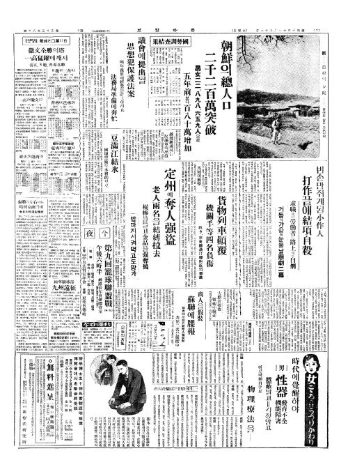 - 朝鮮(조선)의總人口(총인구) 二千二百萬突破(이천이백만돌파)
