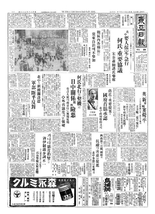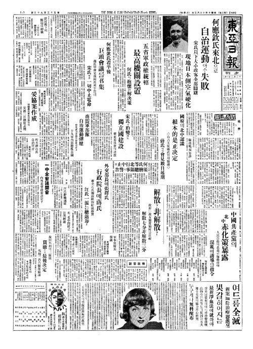 - 何應欽氏來北(하응흠씨내북)으로 自治運動(자치운동)아주失敗(실패)