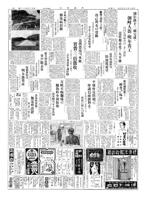 - 舖裝路十三線完成(포장노십삼선완성)코 朝鮮人街(조선인가)는明年着工(명연저공)