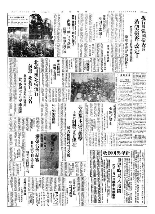- 北滿(북만)에黑死病流行(흑사병유행) 勿驚(물경)!死者五十六名(사자오십륙명)
