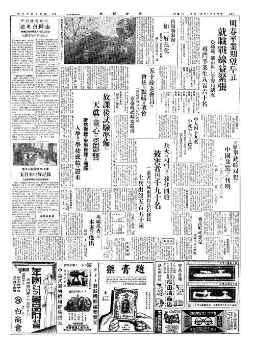 - 明春卒業期(명춘졸업기)앞두고 就職戰線益緊張(취직전선익긴장)
