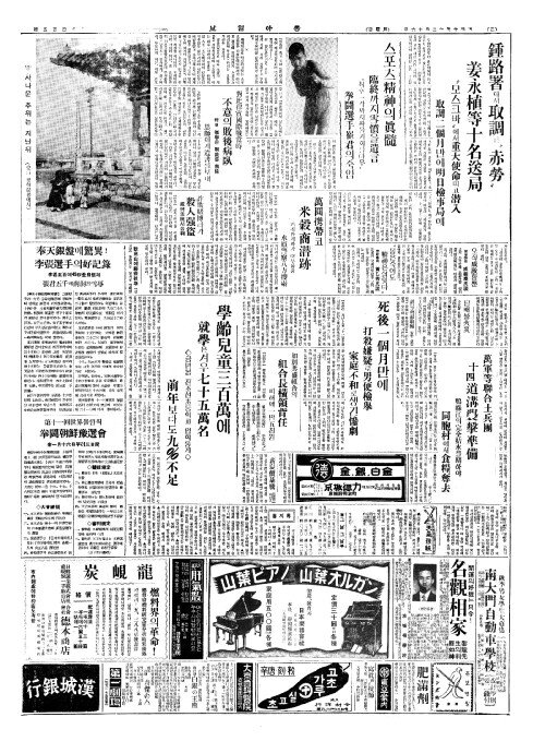 - 學齡兒童三百萬(학령아동삼백만)에 就學(취학)은겨우七十五萬名(칠십오만명)