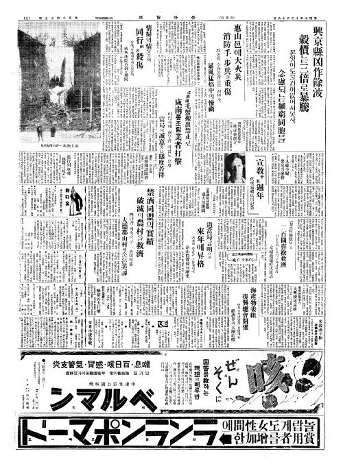 - 雹災村慘狀(박재촌참상)보고 二百圓喜捨救濟(이백원희사구제)