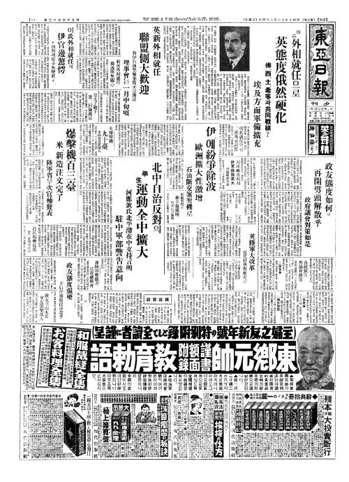 - 이든外相就任(외상취임)으로 英態度俄然硬化(영태탁아연경화)
