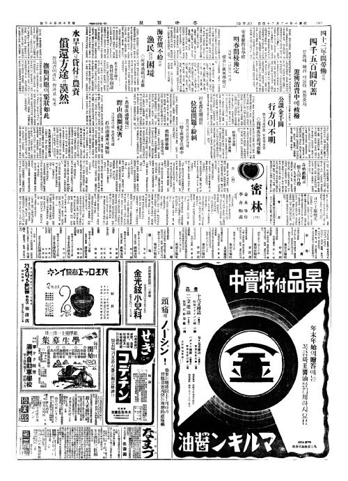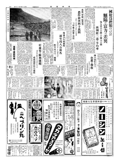 - 水害(수해)、早霜(조상)、雹災等(박재등) 農作被害四十萬圓(농작피해사십만원)