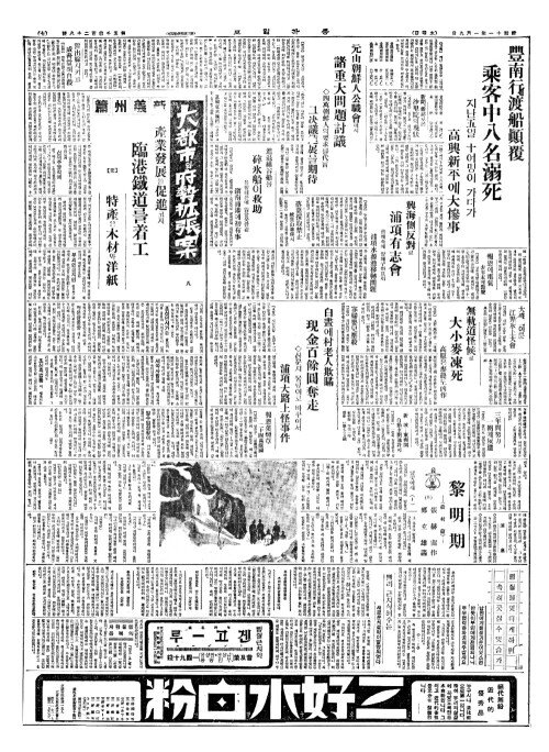 - 豐南行渡船顚覆(풍남행도선전복) 乘客中八名溺死(승객중팔명닉사)