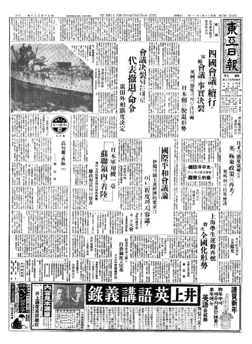 - 四國會議(사국회의)를續行(속행)? 軍縮會議(군축회의)는事實决裂(사실결렬)
