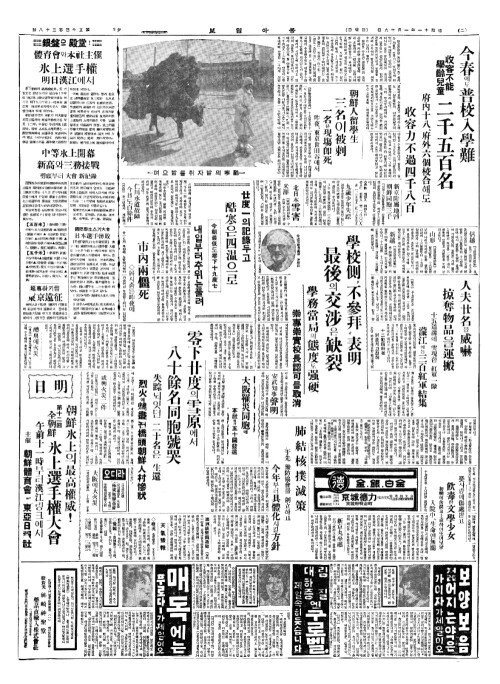 - 今春(금춘)에도普校入學難(보교입학난) 收容不能學齡兒童(수용부능학령아동) 二千五百名(이천오백명)