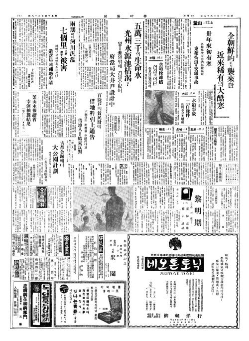- 全朝鮮的(전조선적)으로襲來(습내)한 近來稀有(근내희유)의大酷寒(대혹한)
