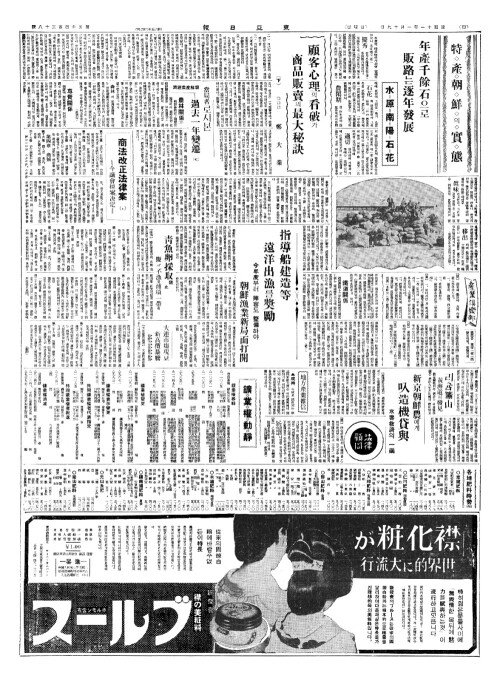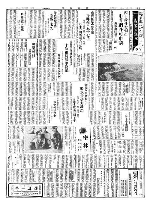 - 嶺東處女地六郡(령동처녀지륙군) 產業(산업)의現狀(현상)❽ 本社特派員(본사특파원)·金仁杰(김인걸)·踏查記(답사기)·四十餘件殺到(사십여건살도)한 巾着網許可申請(건저망허가신청) 海事熱旺盛(해사열왕성)한江陵(강능)【四(사)】