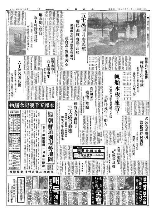 - 冬旱(동한)、酷寒水道故障(혹한수도고장) 每日平均二百餘件(매일평균이백여건)