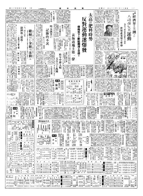 - 太高(태고)한肥料時勢(비요시세) 反對運動遂爆發(반대운동수폭발)