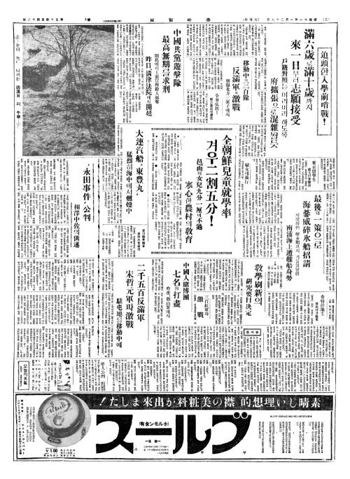 - 全朝鮮兒童就學率(전조선아동취학솔) 겨우二(이)???五分(오분)!