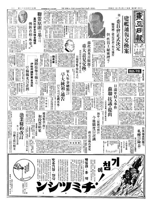 - 日滿軍侵入事件(일만군침입사건) 蘇聯(소련)、抗議(항의)를提出(제출)