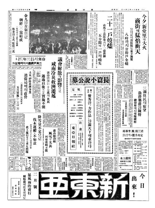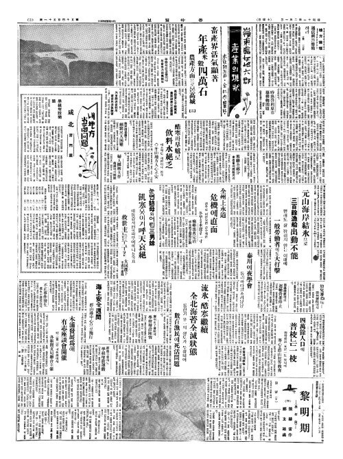 - 元山海岸結氷(원산해안결빙)으로 三百餘漁船出動不能(삼백여어선출동부능)