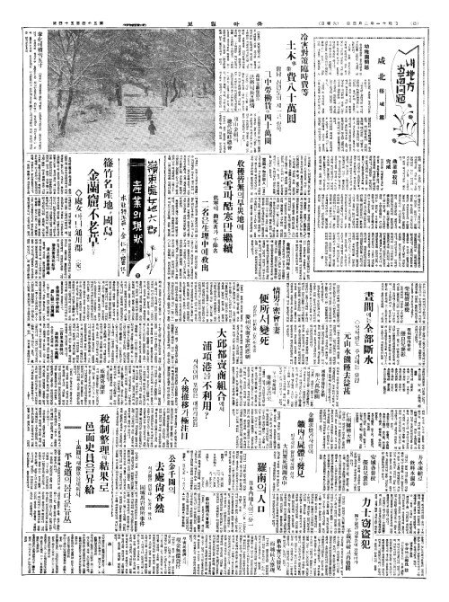 - 收穫皆無(수확개무)의旱災地(한재지)에 積雪(적설)과酷寒(혹한)만繼續(계속)