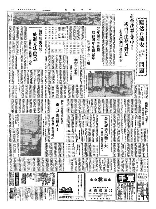 - 國府(국부)의爲替統制(위체통제) 二個月(이개월)만에遂崩壞(수붕괴)?