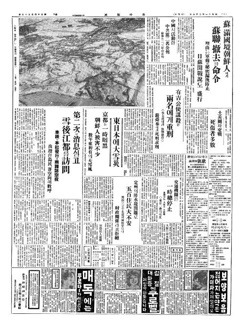 - 蘇(소)、滿國境朝鮮人(만국경조선인)에게 蘇聯(소련)、撤去(철거)를命令(명령)
