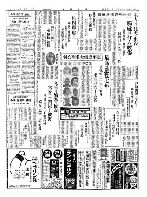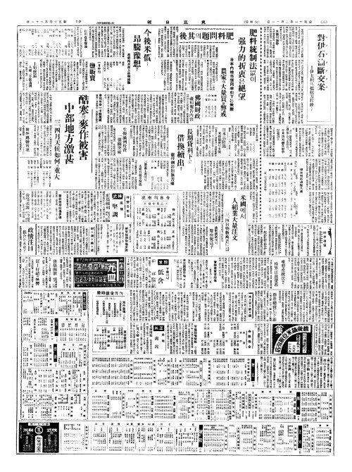 - 長期酷寒繼續(장기혹한계속)으로 麥類被害甚大(맥유피해심대)