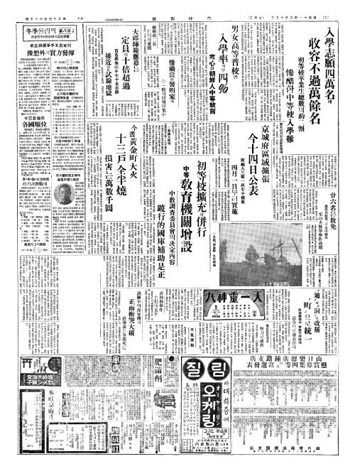 - 入學志願四萬名(입학지원사만명)에 收容不過萬餘名(수용부과만여명)
