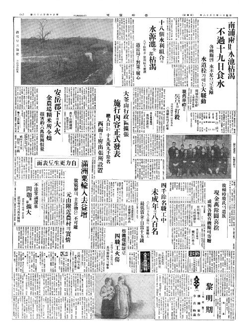 - 南浦兩貯水池枯渴(남포량저수지고갈) 不過十九日食水(부과십구일식수)