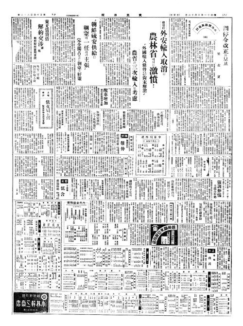 - 總督府外安輸入取消(총독부외안수입취소)로 農林省(농임성)에서는激憤(격분)!