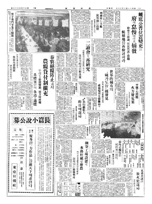 - 春窮絕糧防止(춘궁절량방지)코저 農糧貸付制擴充(농량대부제확충)