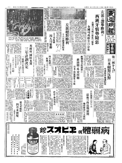 - 左派(좌파)의選擧勝利(선거승리)로 西班牙情勢險惡(서반아정세험악)