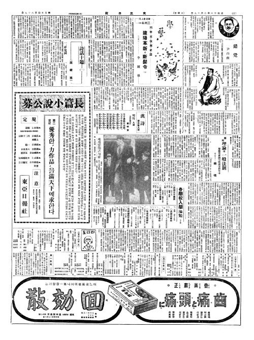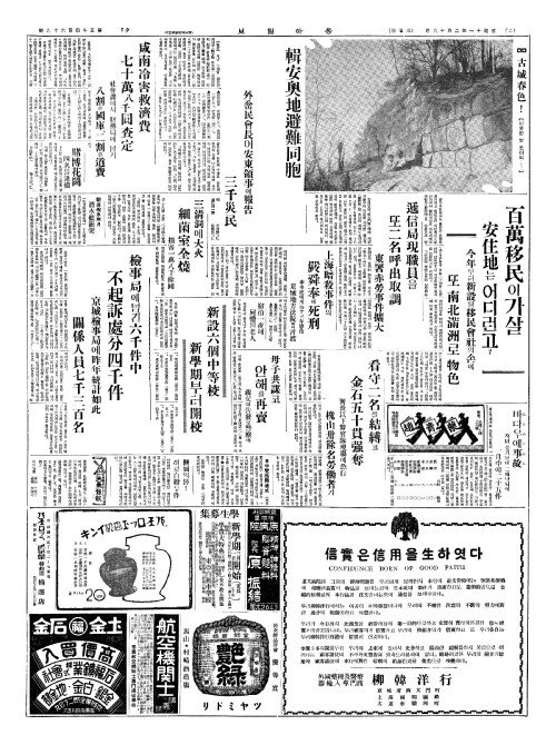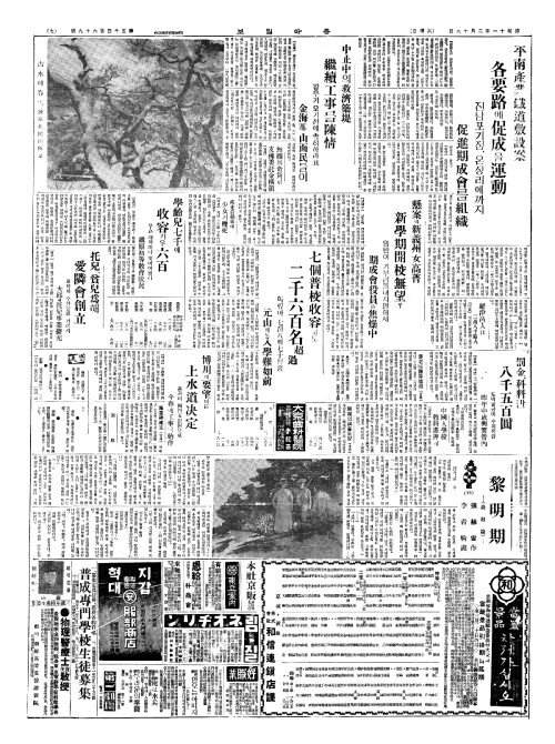 - 學齡兒七千(학령아칠천)에 收容(수용)겨우六百(육백)